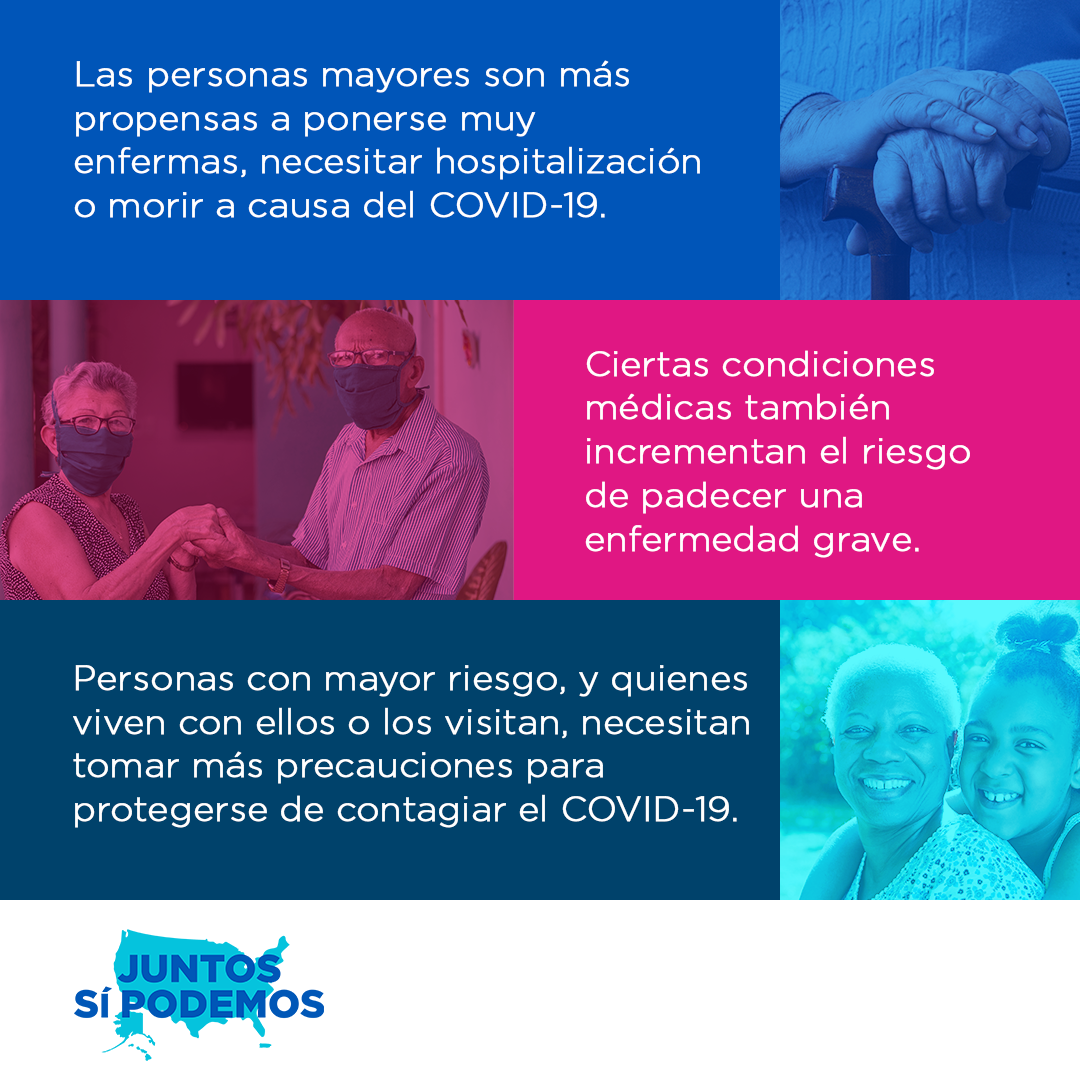 Publicidad para Twitter, Facebook e Instagram acerca del riesgo para las personas mayores de contraer COVID-19 de manera severa.